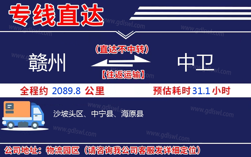 贛州到中衛(wèi)物流專線是一條連接贛州和中衛(wèi)的貨物運(yùn)輸線路,由陸順物流公司提供直達(dá)不中轉(zhuǎn)運(yùn)輸服務(wù),能為企業(yè)、工廠、貿(mào)易商以及個(gè)人提供高效、便捷、可靠的貨運(yùn)解決方案