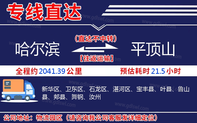 哈爾濱到平頂山物流專線是一條連接哈爾濱和平頂山的貨物運輸線路,由陸順物流公司提供直達不中轉(zhuǎn)運輸服務,能為企業(yè)、工廠、貿(mào)易商以及個人提供高效、便捷、可靠的貨運解決方案